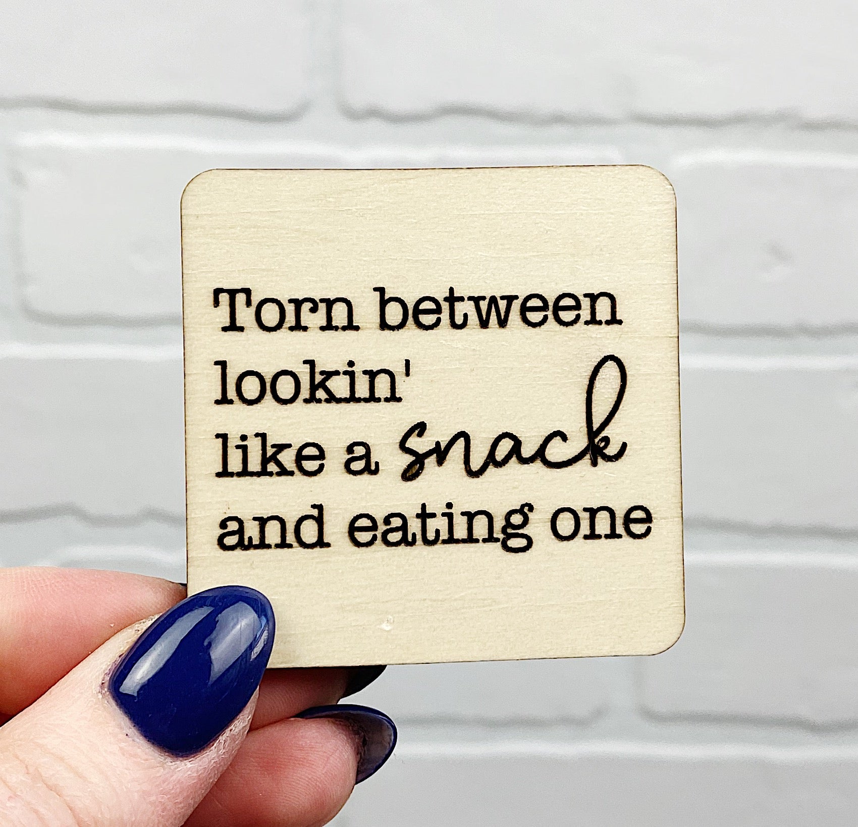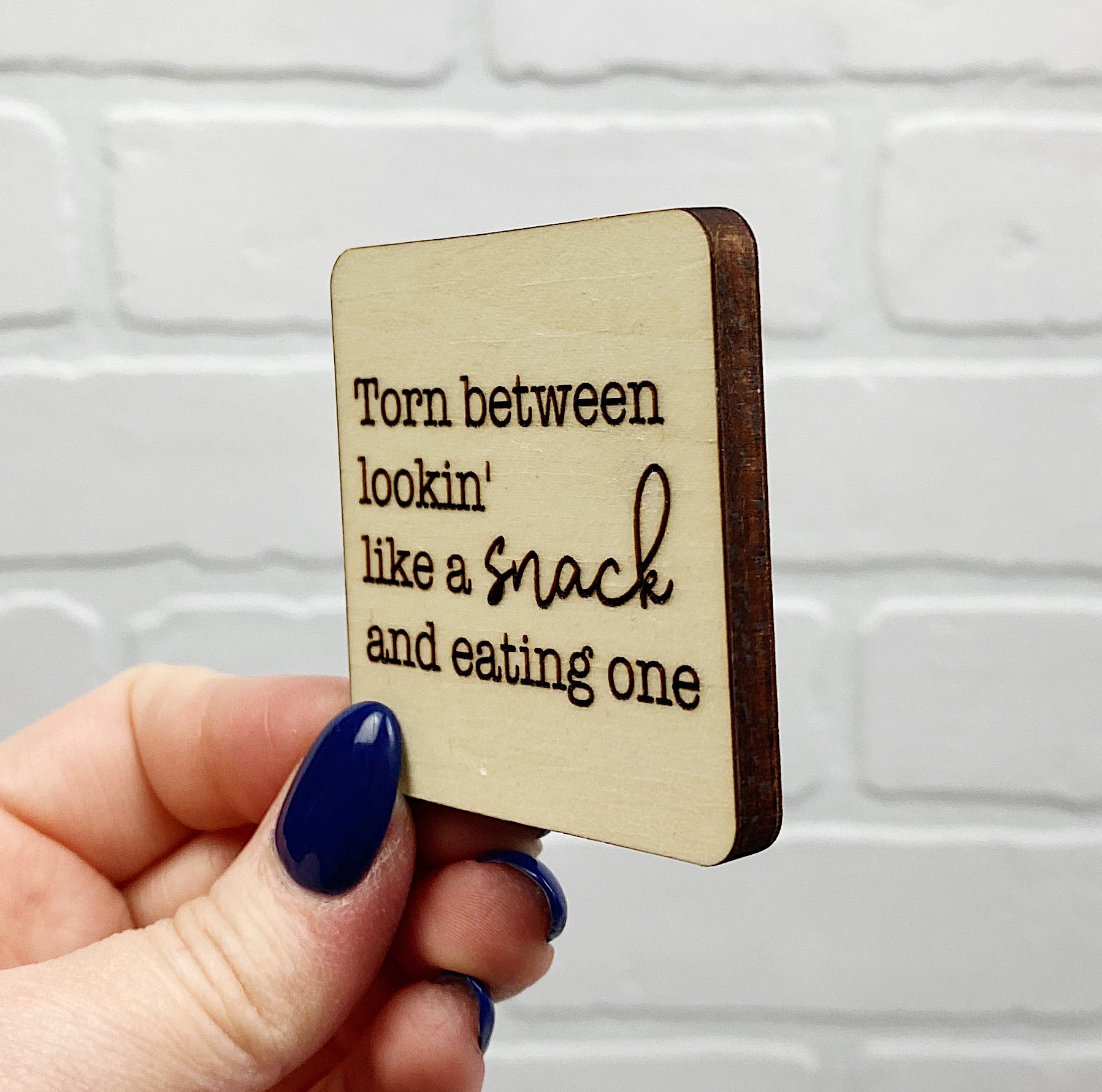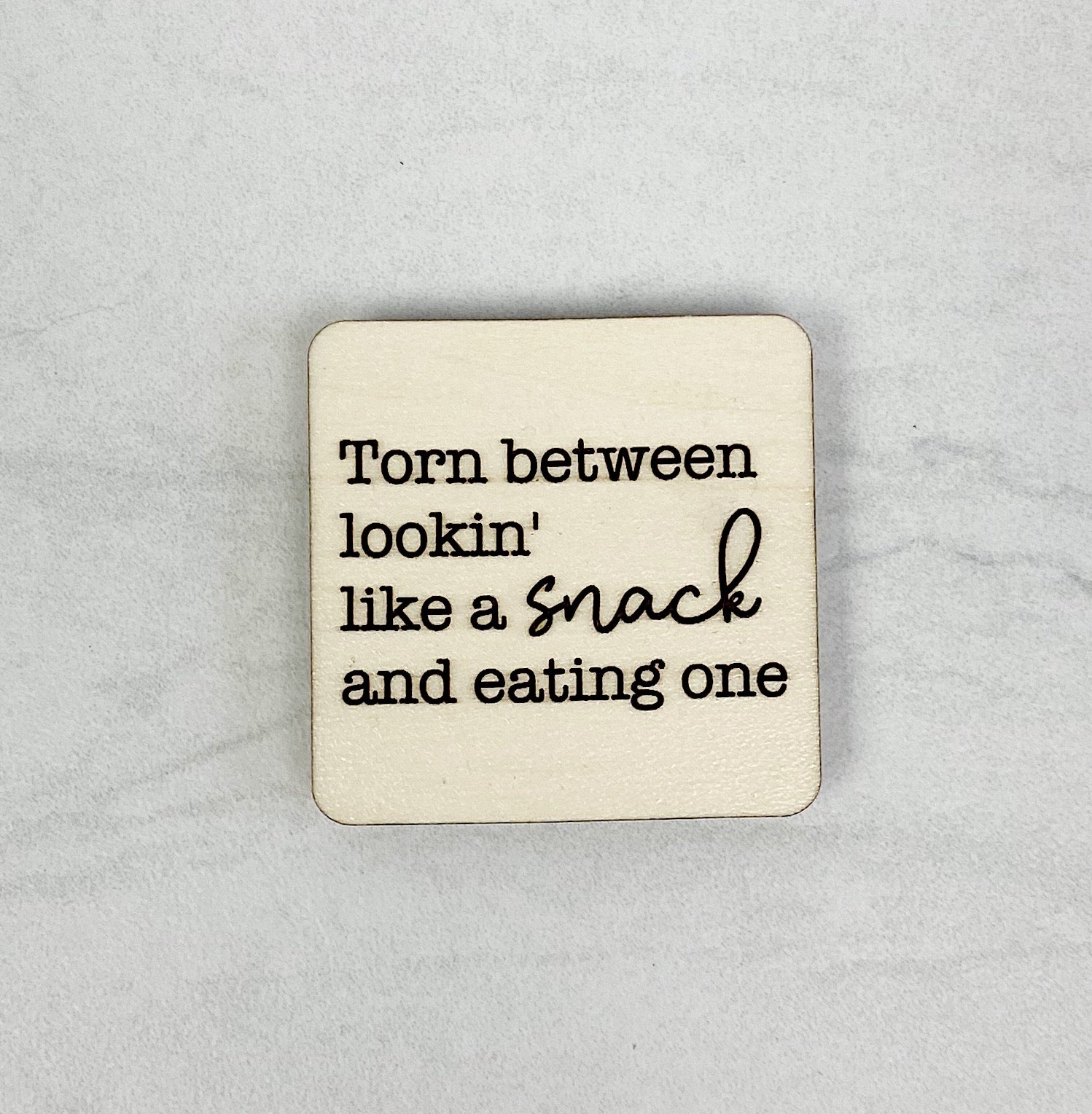 Torn Between Lookin' Like a Snack and Eating One | Wooden Magnet | Magnet