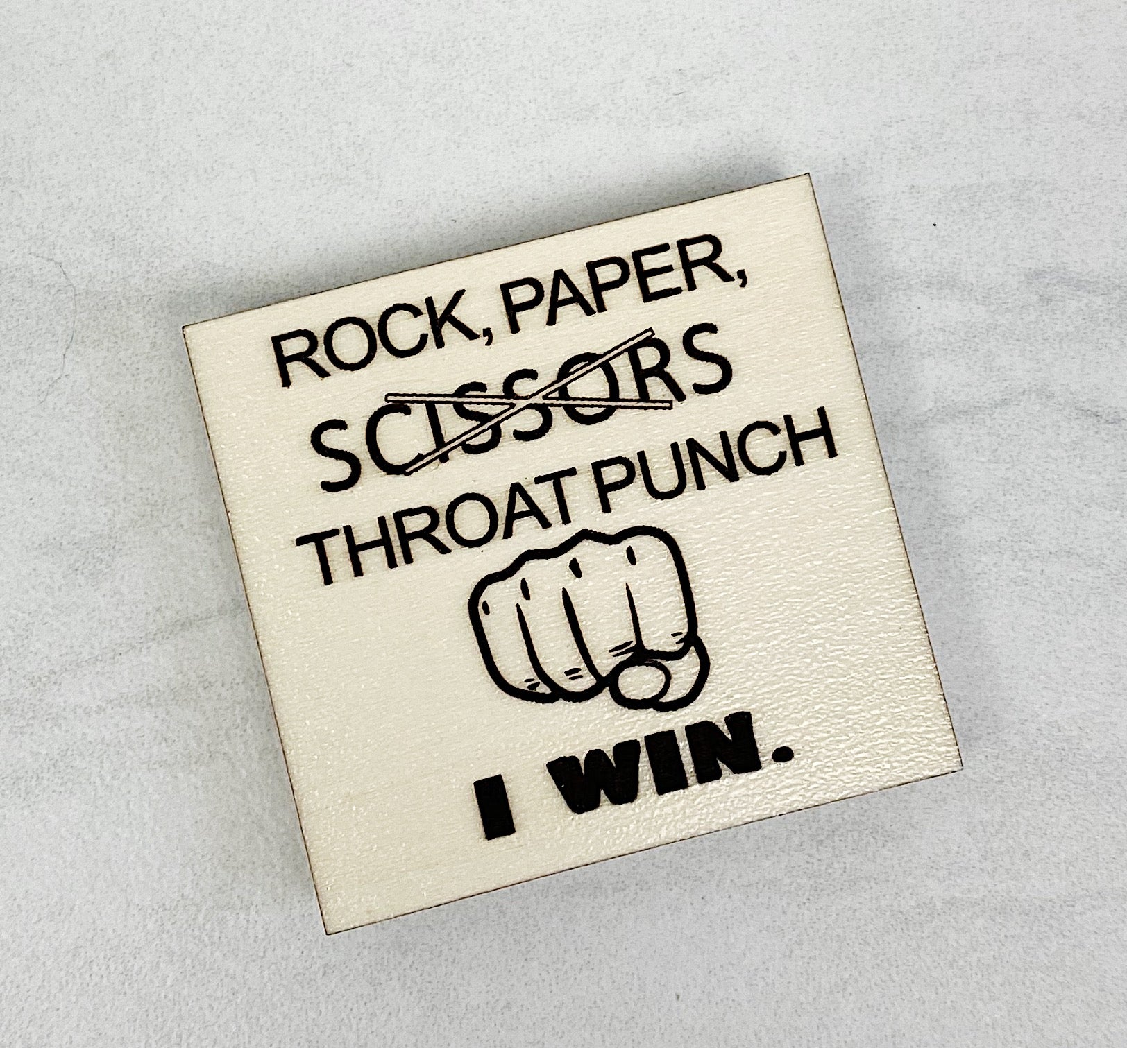 Rock, Paper, Scissors, Throat Punch | Wooden Magnet | Magnet