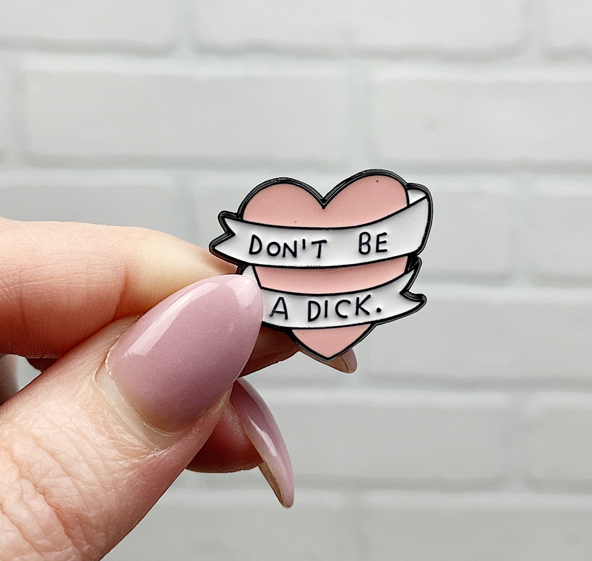 Enamel pin with a funny saying is perfect for a gift! Include a rubber backing.