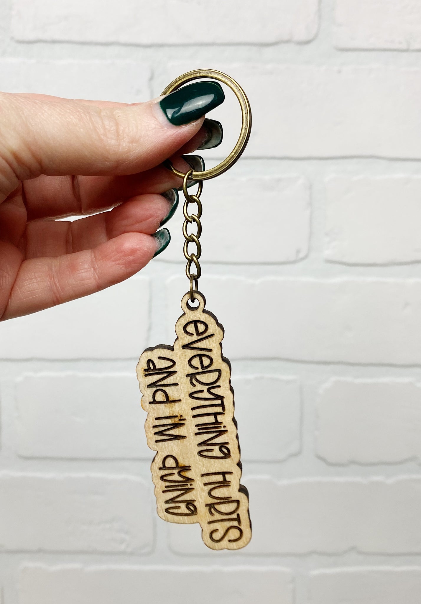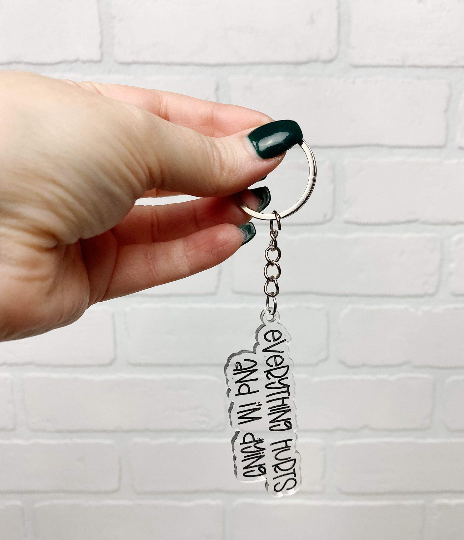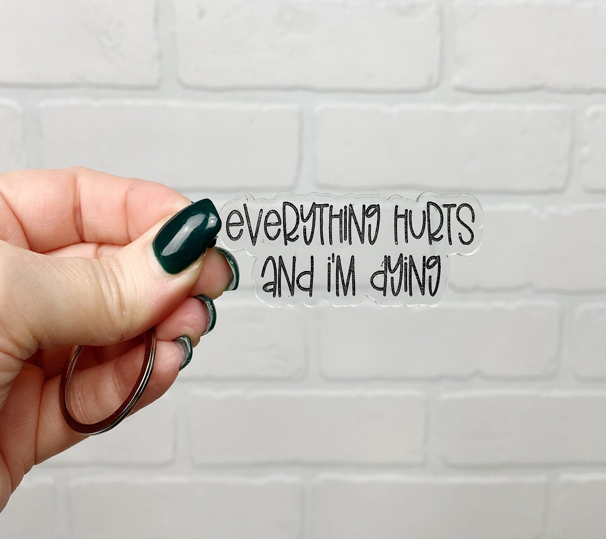 Everything Hurts And I'm Dying acrylic keychain. Your choice of acrylic or wood.