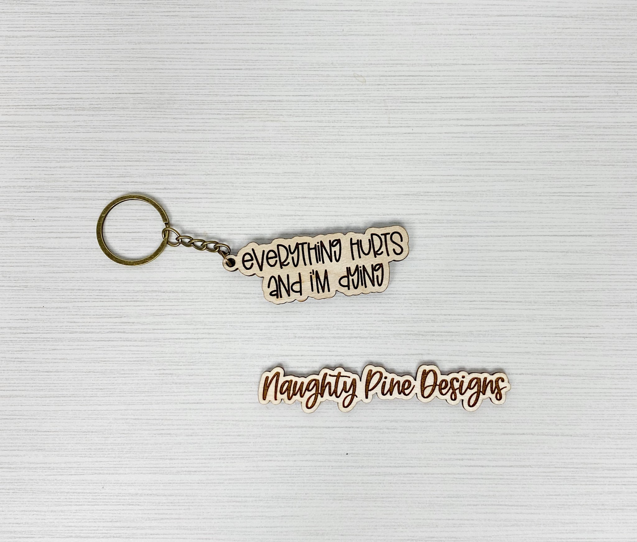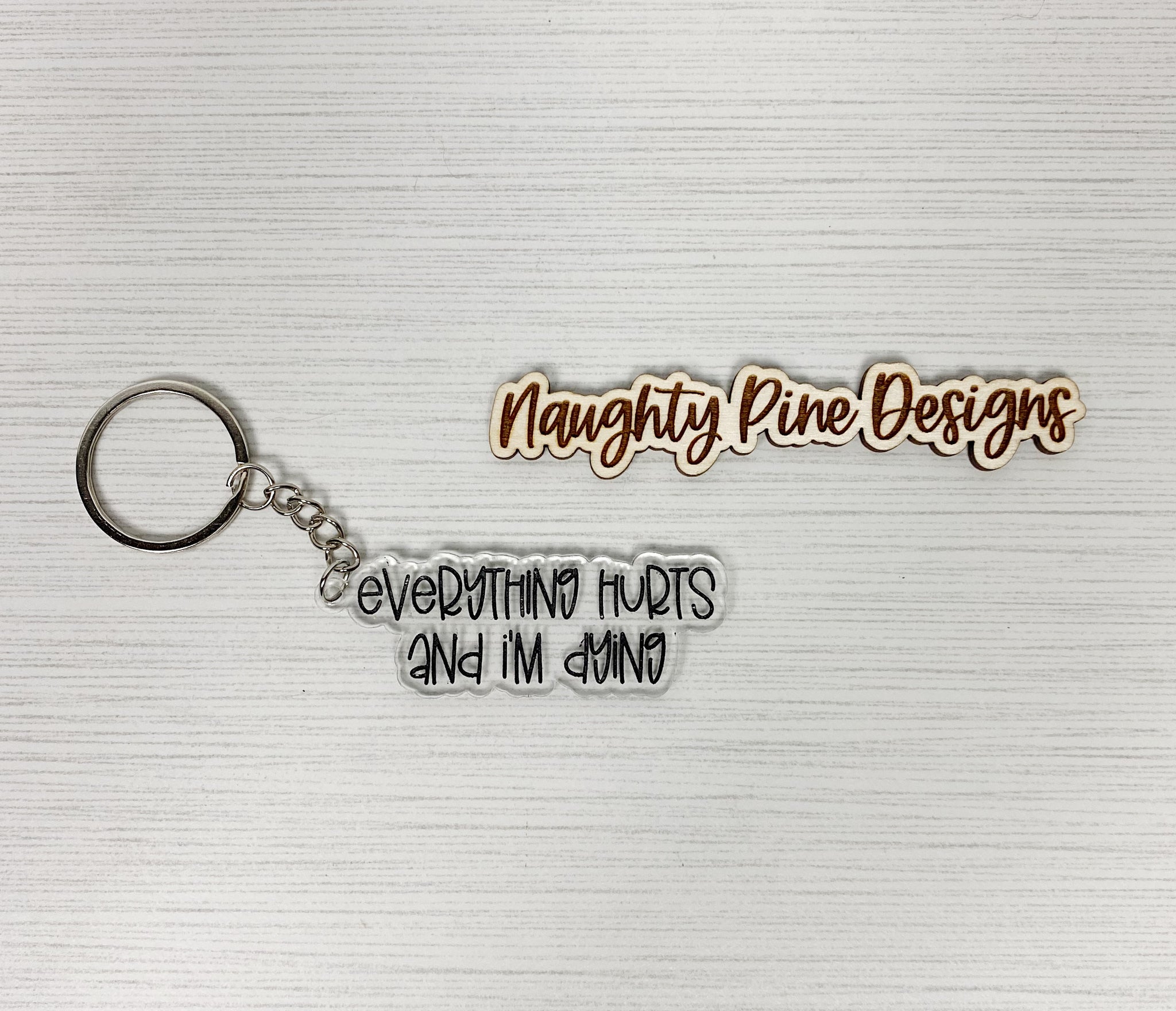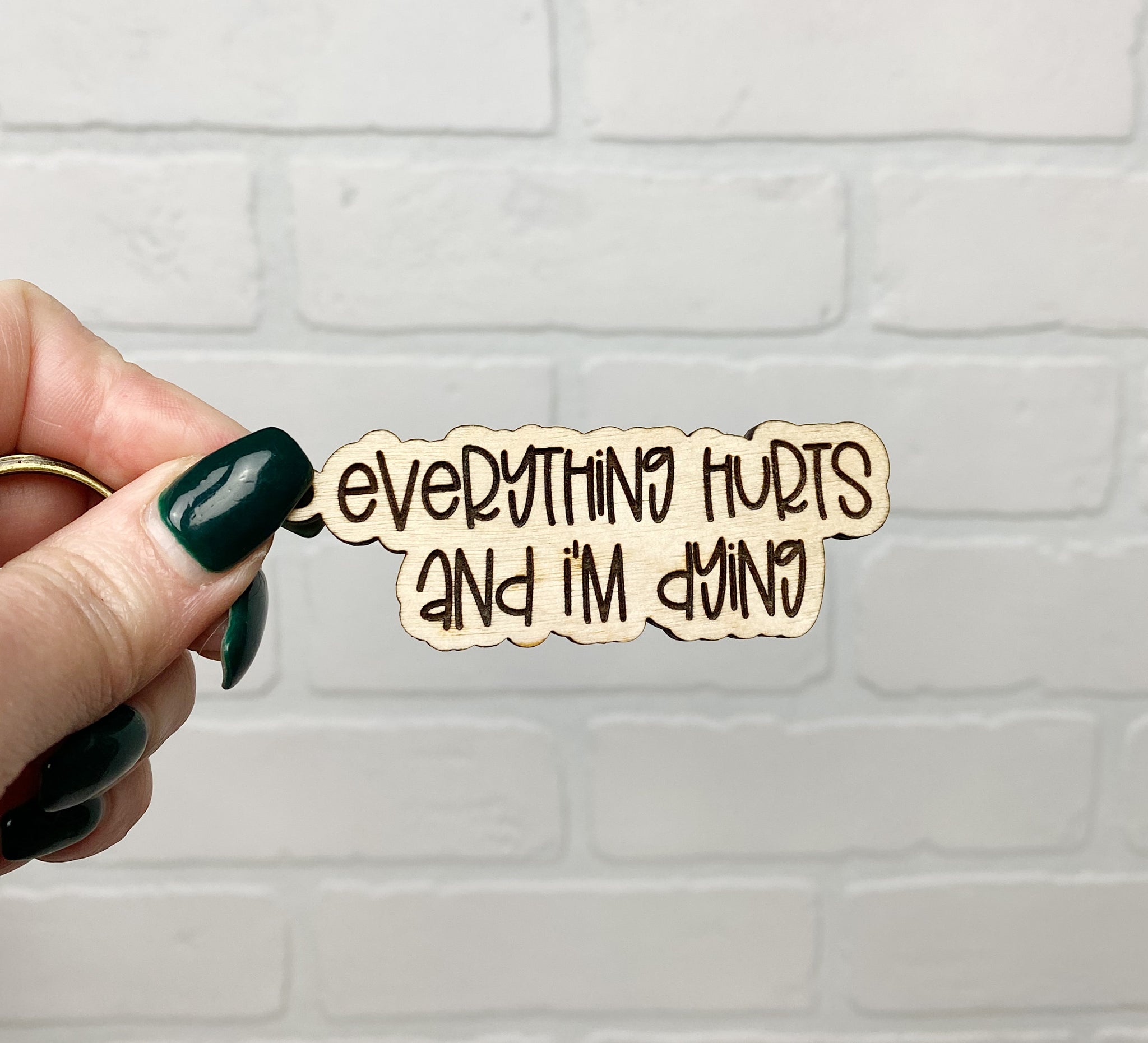 Everything Hurts And I'm Dying acrylic keychain. Your choice of acrylic or wood.