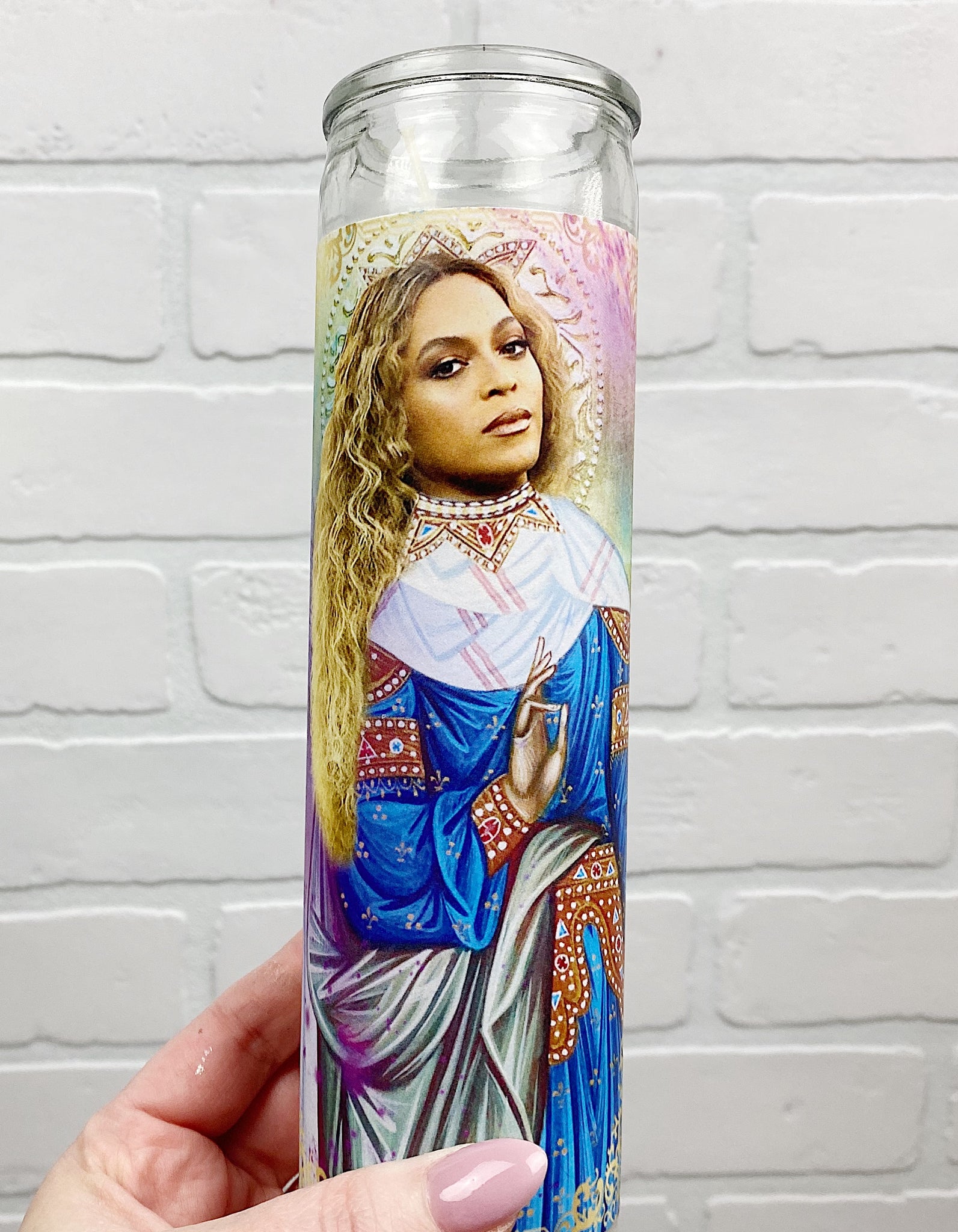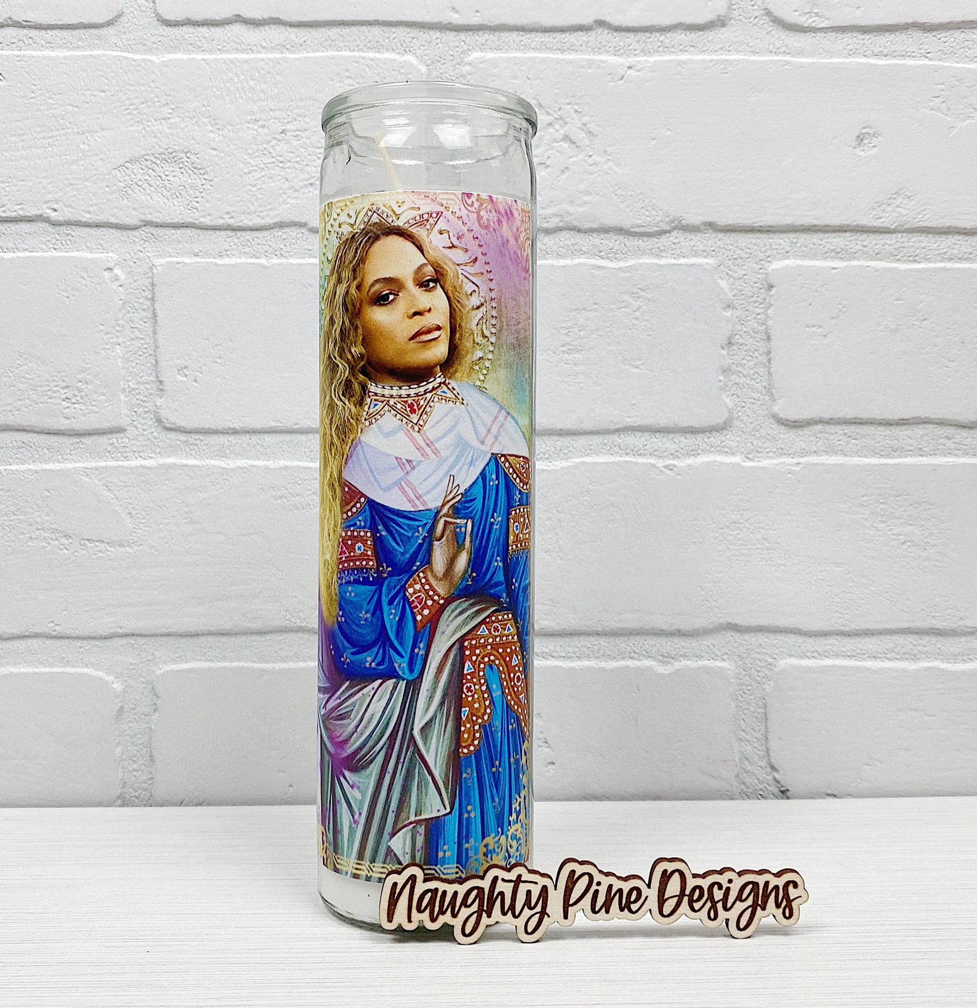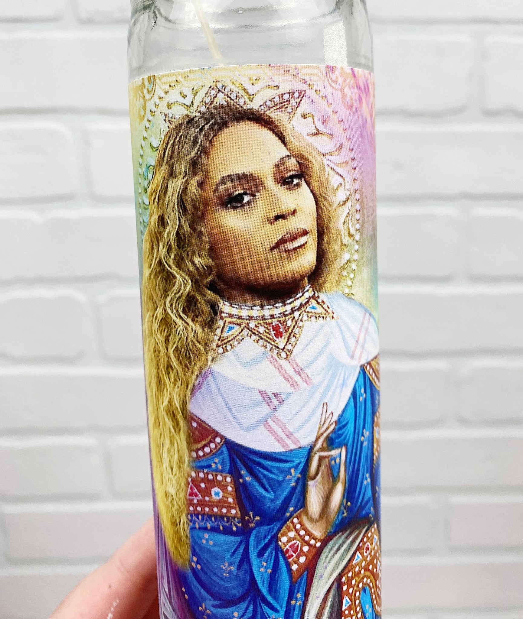 This tall white "prayer" candle makes a great gift for a Bey Hive fan! Fun addition to your shrine...I mean collection. Limited quantities so get yours now!